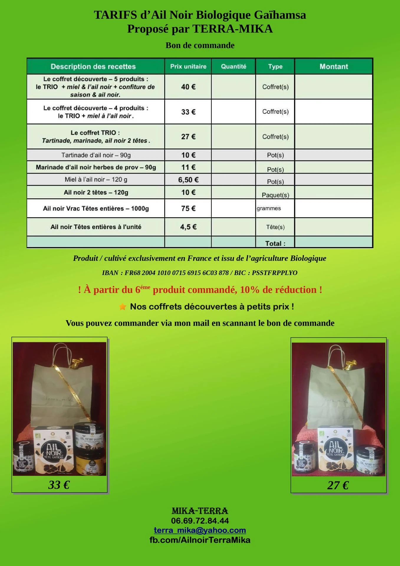 Tarifs de notre gamme de recettes d'ail noir avec les coffrets découvertes à offrir !