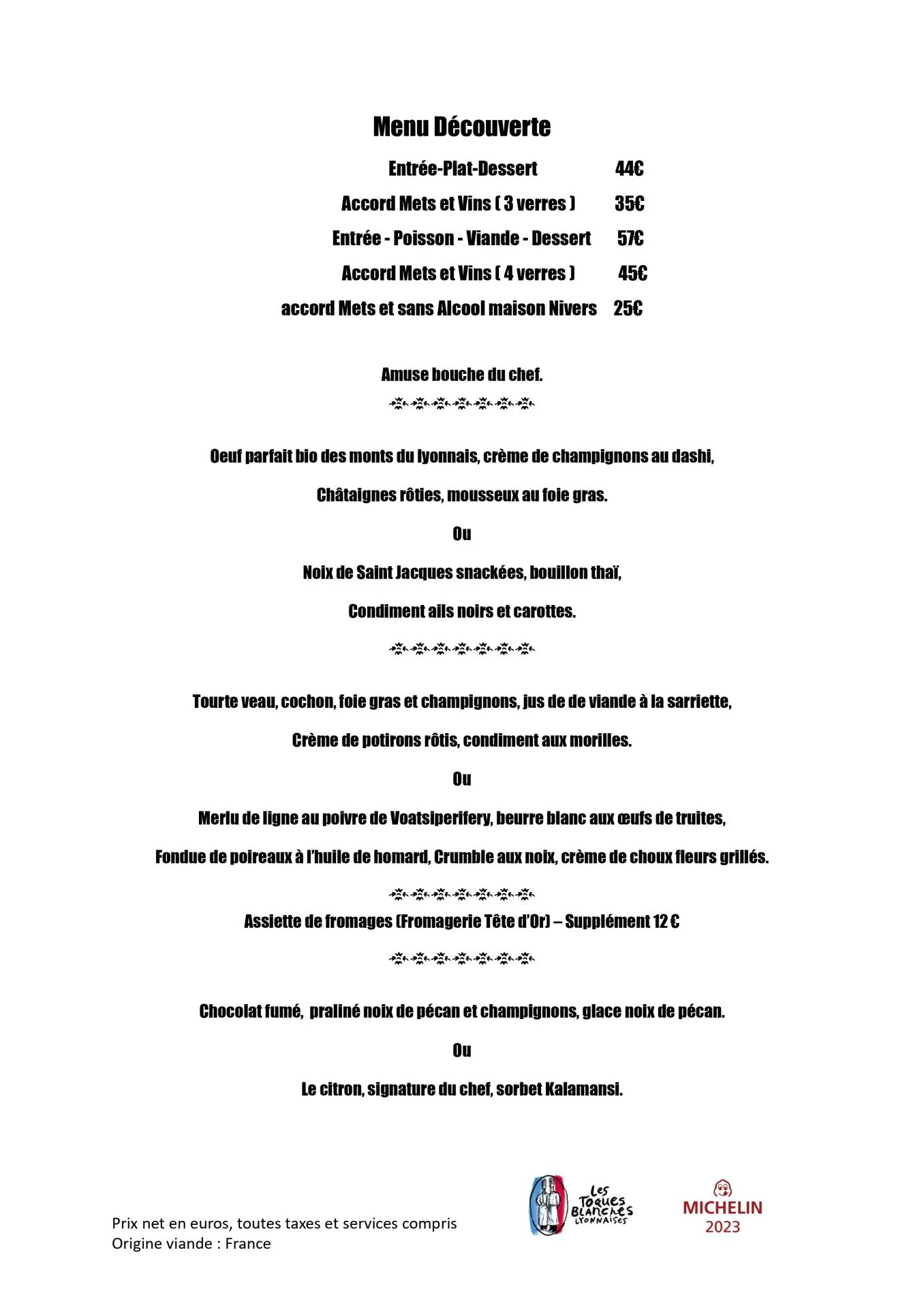 Menu du Soir